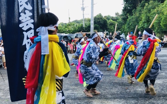 何と2年ぶりにお祭りが開催される日だったのです。このお祭りは”棒踊り”と言い、300年ほど前に疫病が流行したため、尾之間集落にある温泉神社に疫病退散を祈願したところ、流行が止まったとして、それ以来、旧暦の6月15日に祇園祭りが開かれ、棒踊りを奉納するというご神事であります。