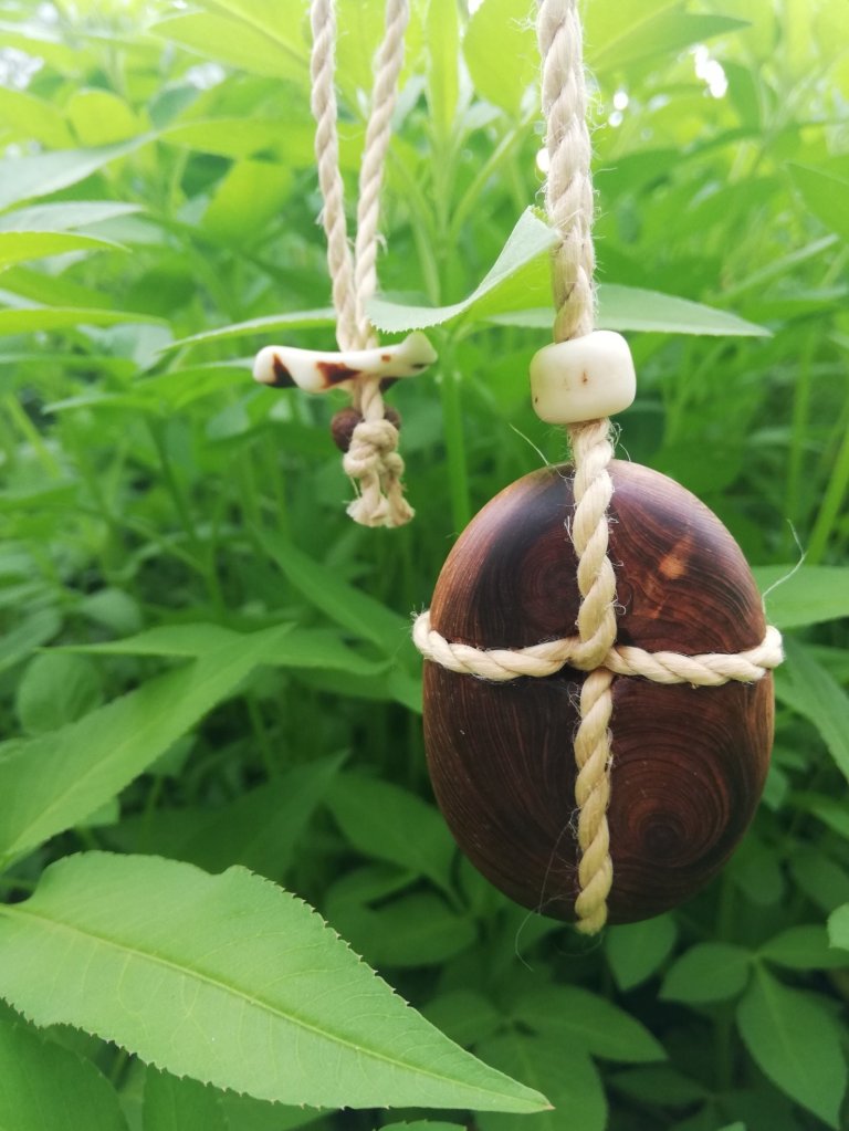 今回出来上がったのは、以前にふと思い浮かんだクロスのイメージを麻紐、屋久杉にのせました。