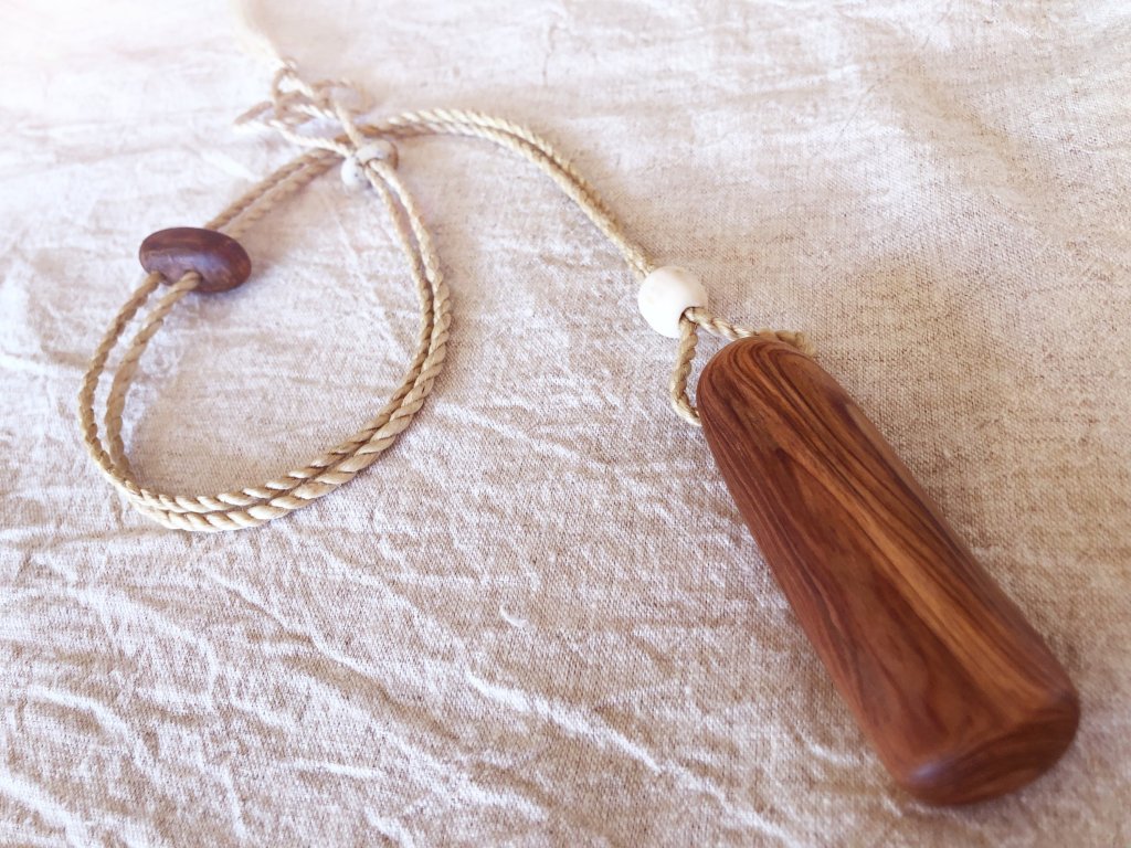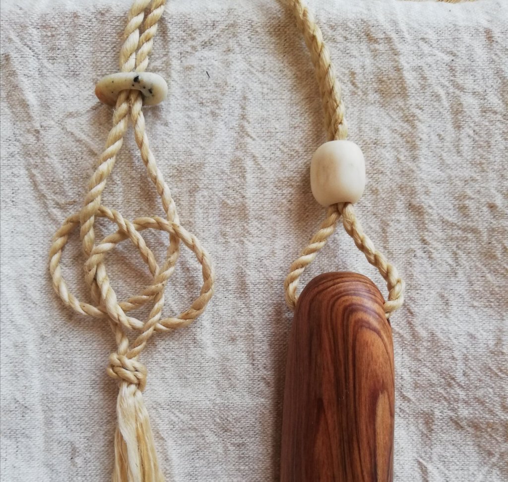 お届けしたあと、”屋久杉の部分を握っていると、落ち着きます。麻の飾りがたいへん気に入っています。バックスタイル。祈りにピッタリなお守りです。”と