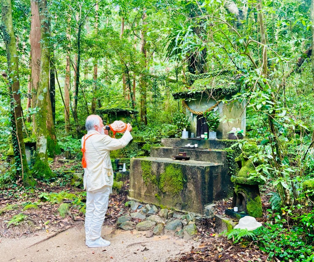 今回、屋久島で貴重な時をご一緒させていただいたのは、何と、羽黒山伏の星野文紘先達です。出羽三山の羽黒山の麓に400年続く宿坊『大聖坊』の十三代目であり、出羽三山神社の重鎮でも在られます。(先達とは、修験道で山に入る際の指導者であるという意味です。)